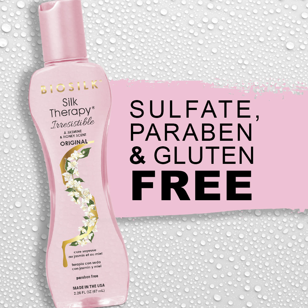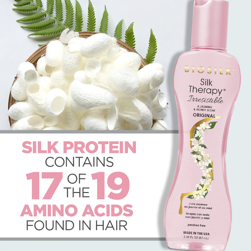 WEIGHTLESS LEAVE-IN TREATMENT: BioSilk Silk Therapy Irresistible Original is a weightless leave-in silk replenishing and reconstructing treatment that helps repair, smooth and protect all hair types.